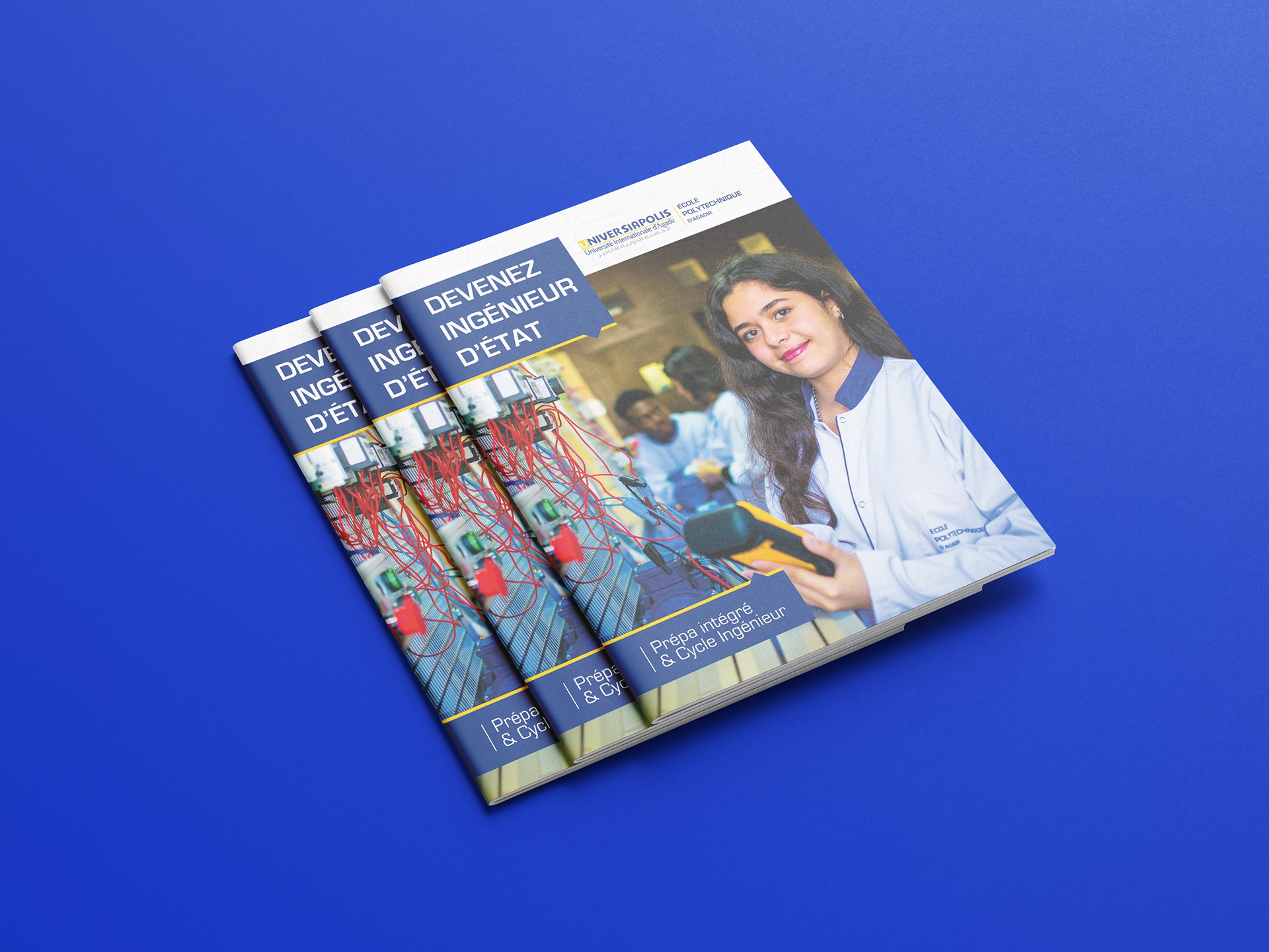 Azigzao a conçu la brochure Devenez Ingénieur d’État pour Universiapolis, mettant en avant les programmes de l’École Polytechnique avec un design moderne et structuré.