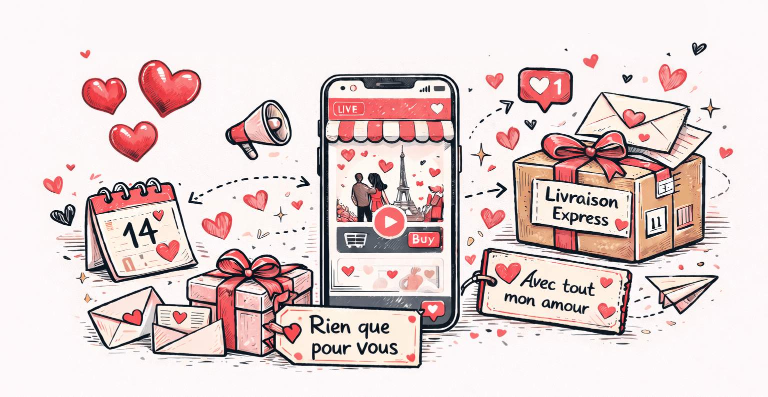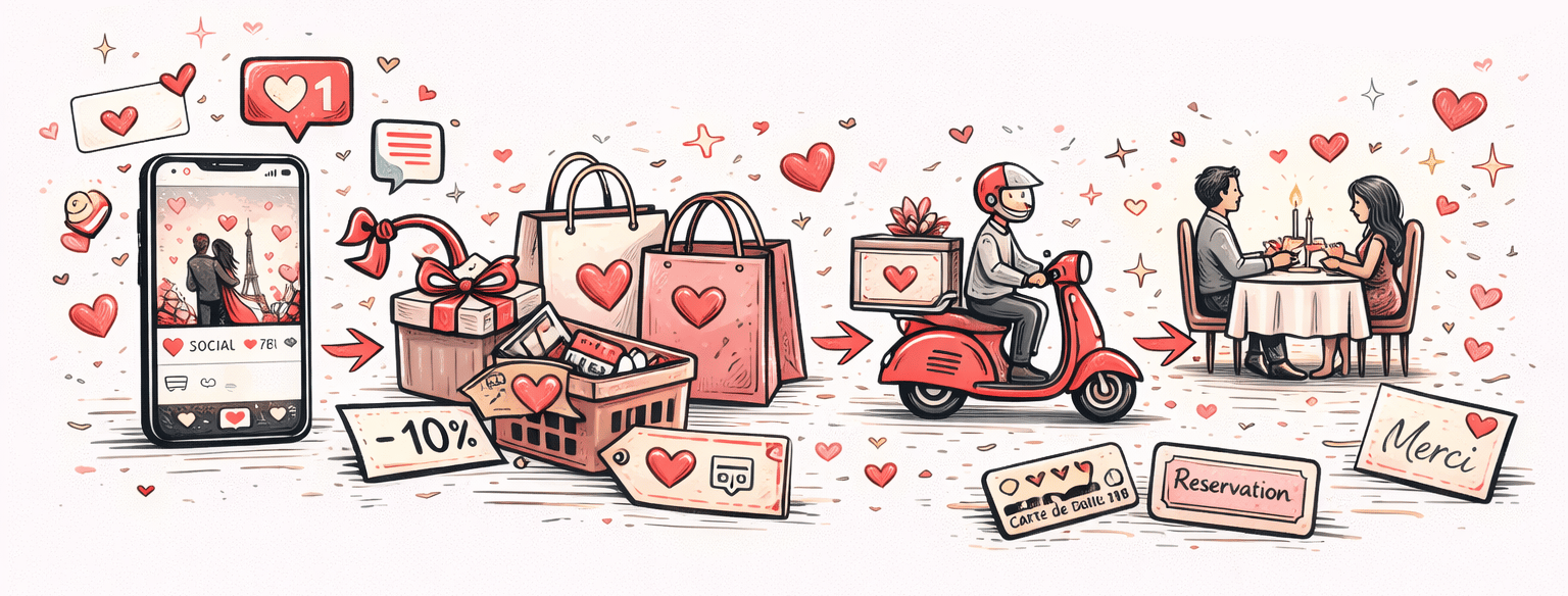 Le e-commerce profite pleinement de la Saint-Valentin avec des options de livraison rapide, des emballages soignés et des messages personnalisés.