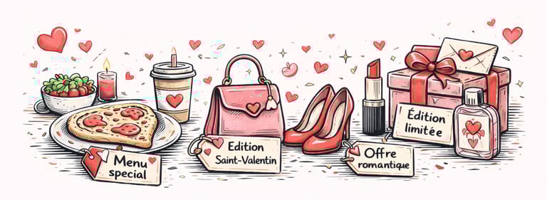 Même les marques qui ne sont pas directement associées à l’amour profitent de cette période. Restaurants, cafés, marques de mode ou cosmétiques adaptent leurs offres et packaging pour s’inscrire dans le thème de la Saint-Valentin.