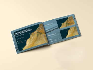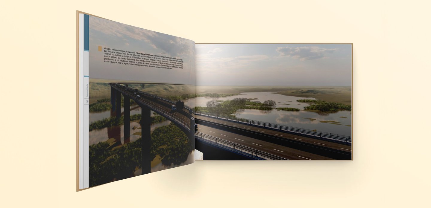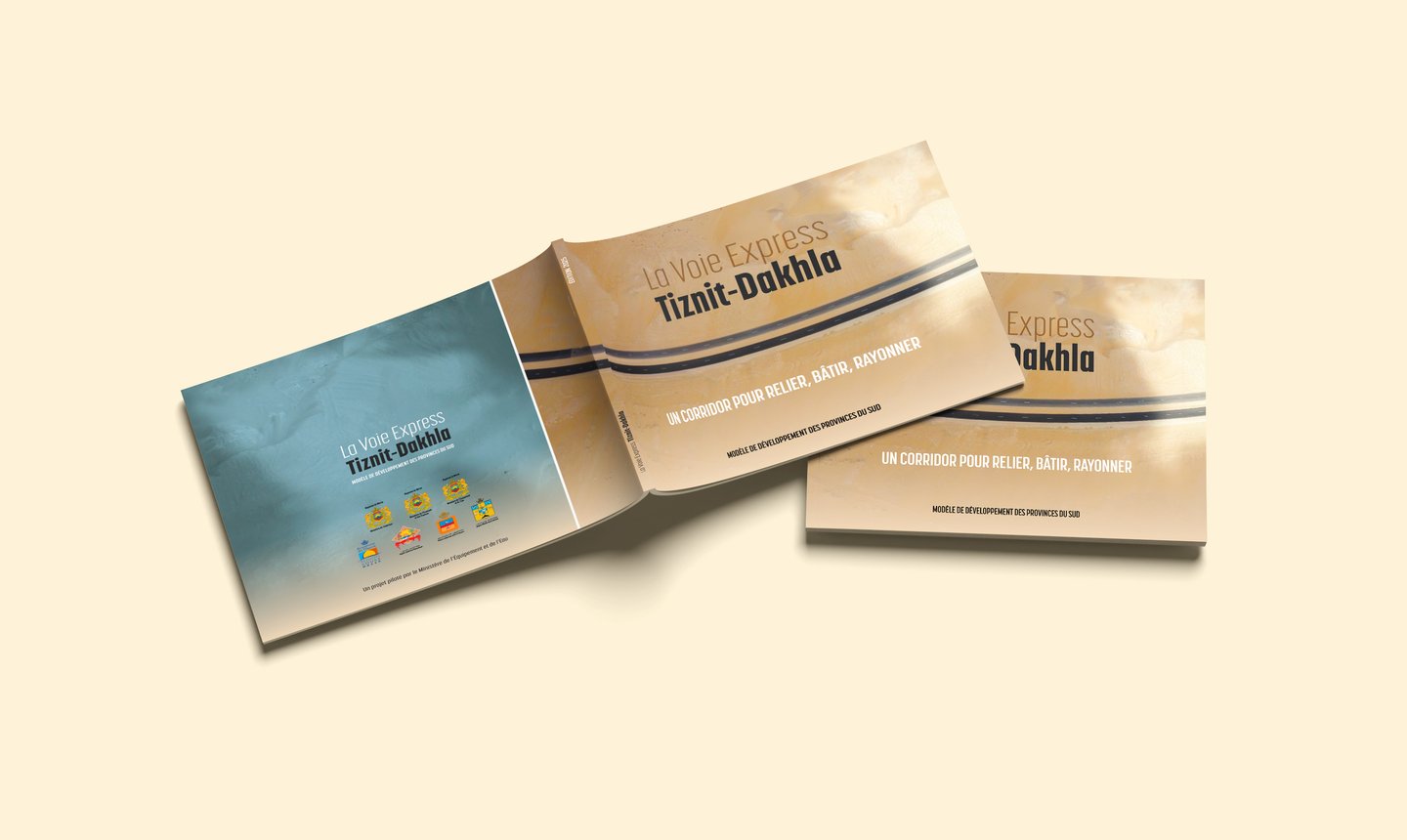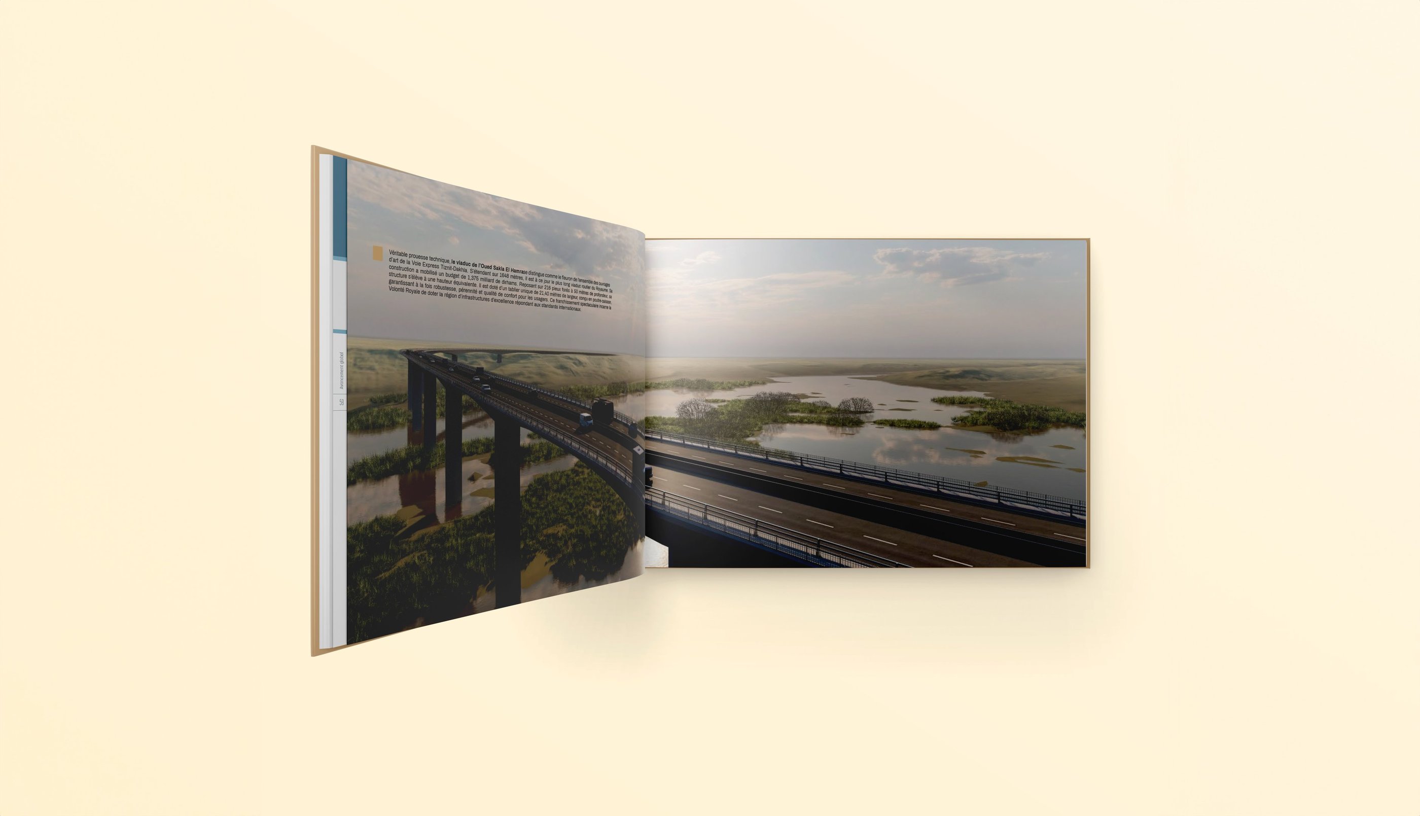 À l’occasion du 50e anniversaire de la Marche Verte, AZIGZAO a signé l’identité graphique et éditoriale d’une édition spéciale consacrée à la mise en valeur de la Voie Express Tiznit–Dakhla, un ouvrage majeur inscrit dans le Programme Royal de Développement des Provinces du Sud.