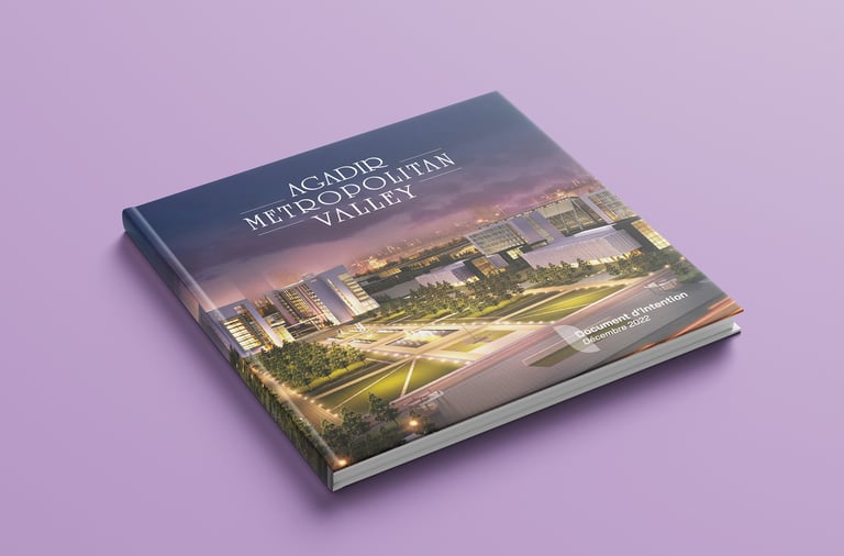 Agadir Metropolitan Valley (1176 ha) vise l’urbanisme et l’économie, en lien avec le Pacte National pour l’Investissement 2026. Réalisé par Azigzao en 2022 avec des partenaires publics.